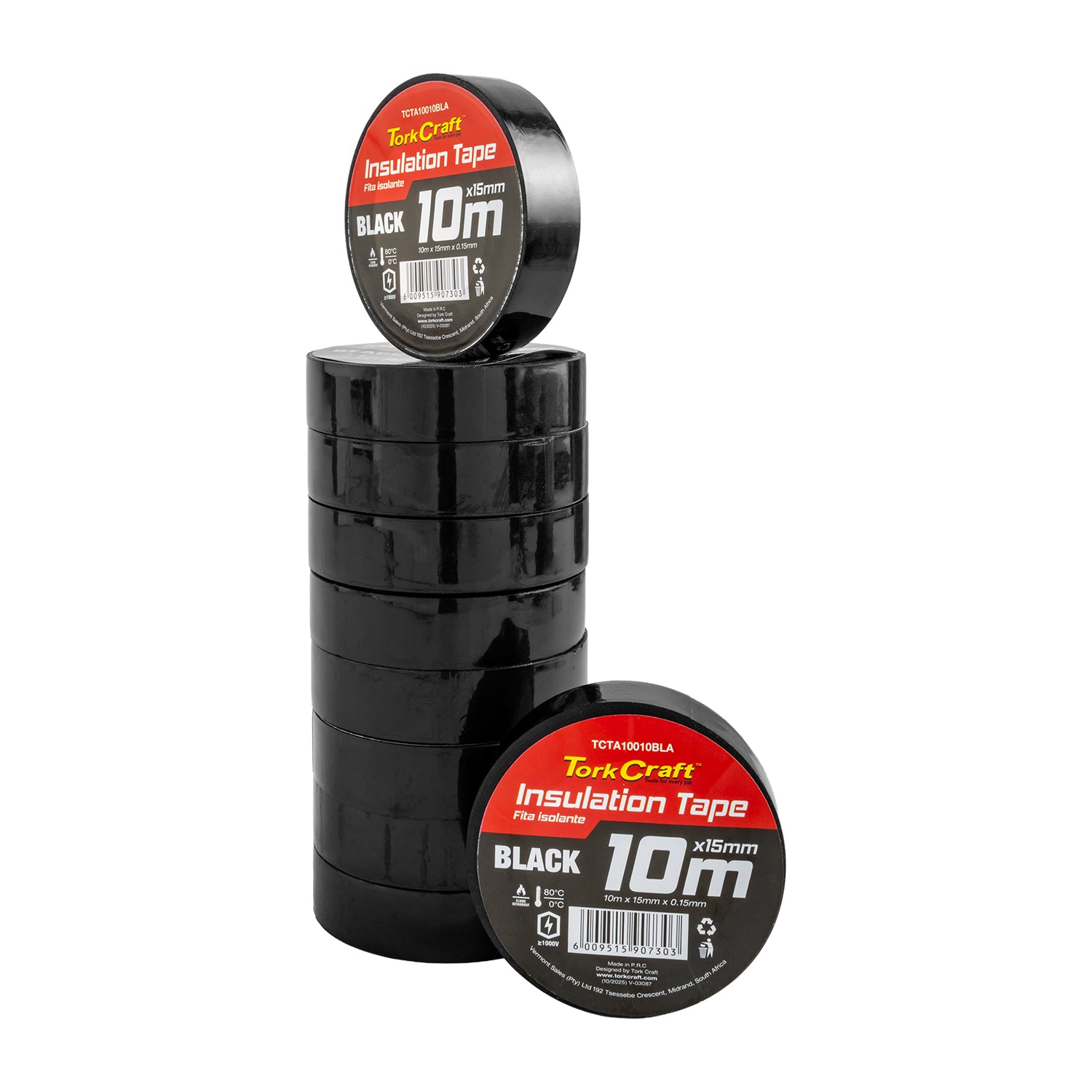 Tork Craft 0.15mm x 15mm x 10m Black Insulation Tape (TCTA10010BLA)